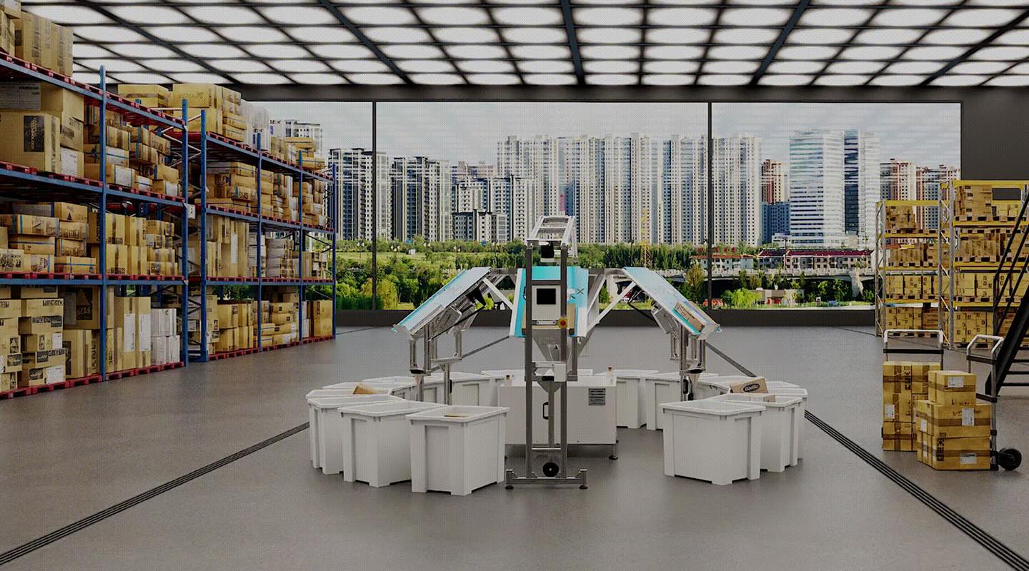 It scans labels for correct sorting, can program the type of sorting according to your needs and keep track of the sorted products.