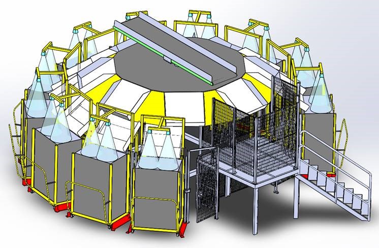 The machine is foldable because its initial philosophy is to be a mobile tool due to the fact that it will probably not need to be used for a long time (small sorting…) in order to reduce the space occupied at the customer’s facility.
